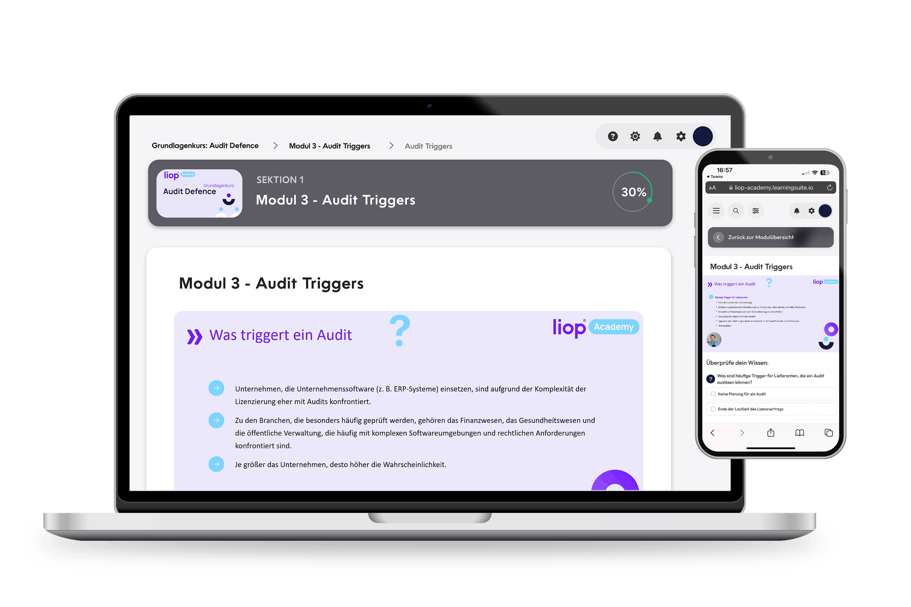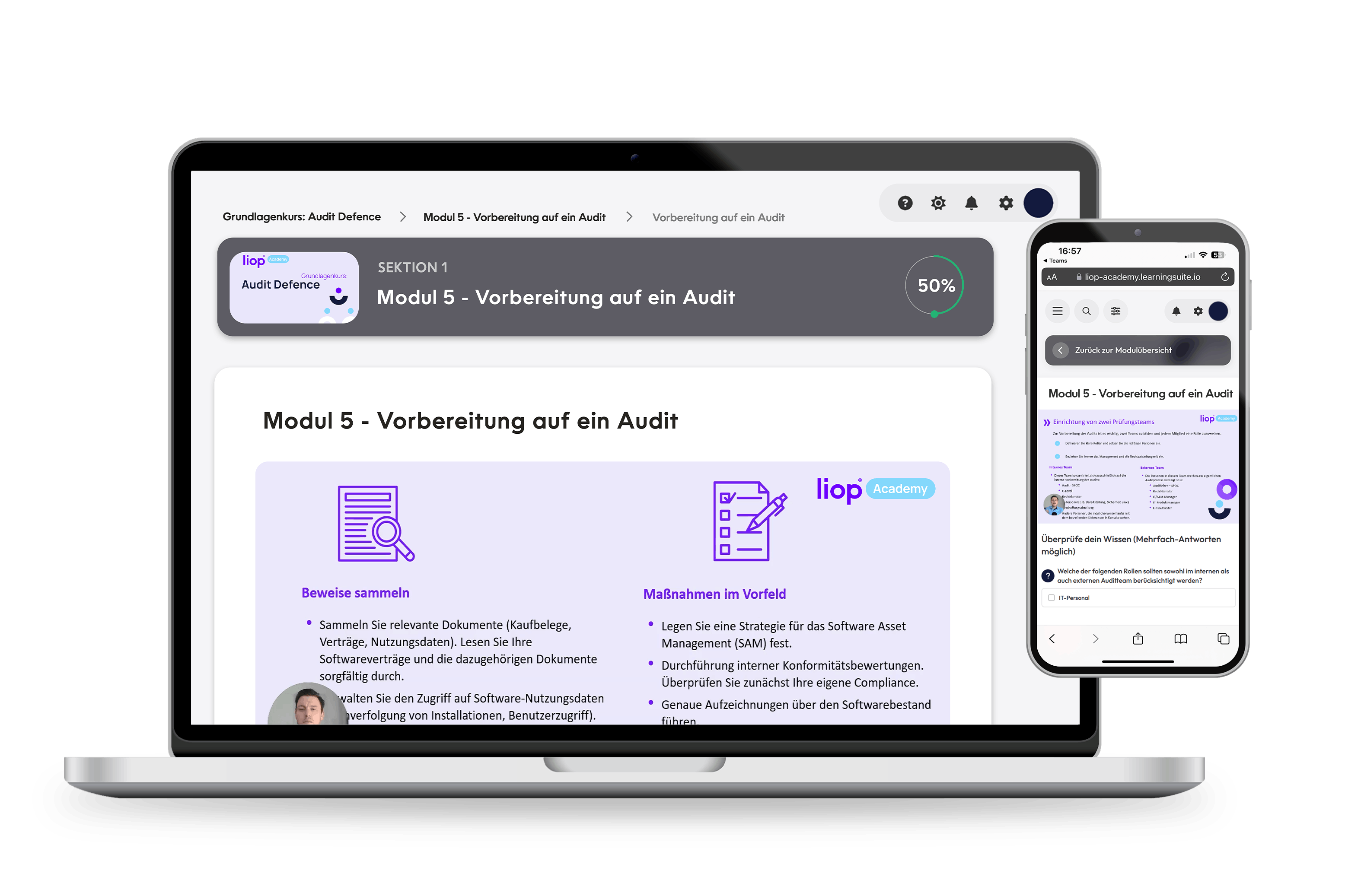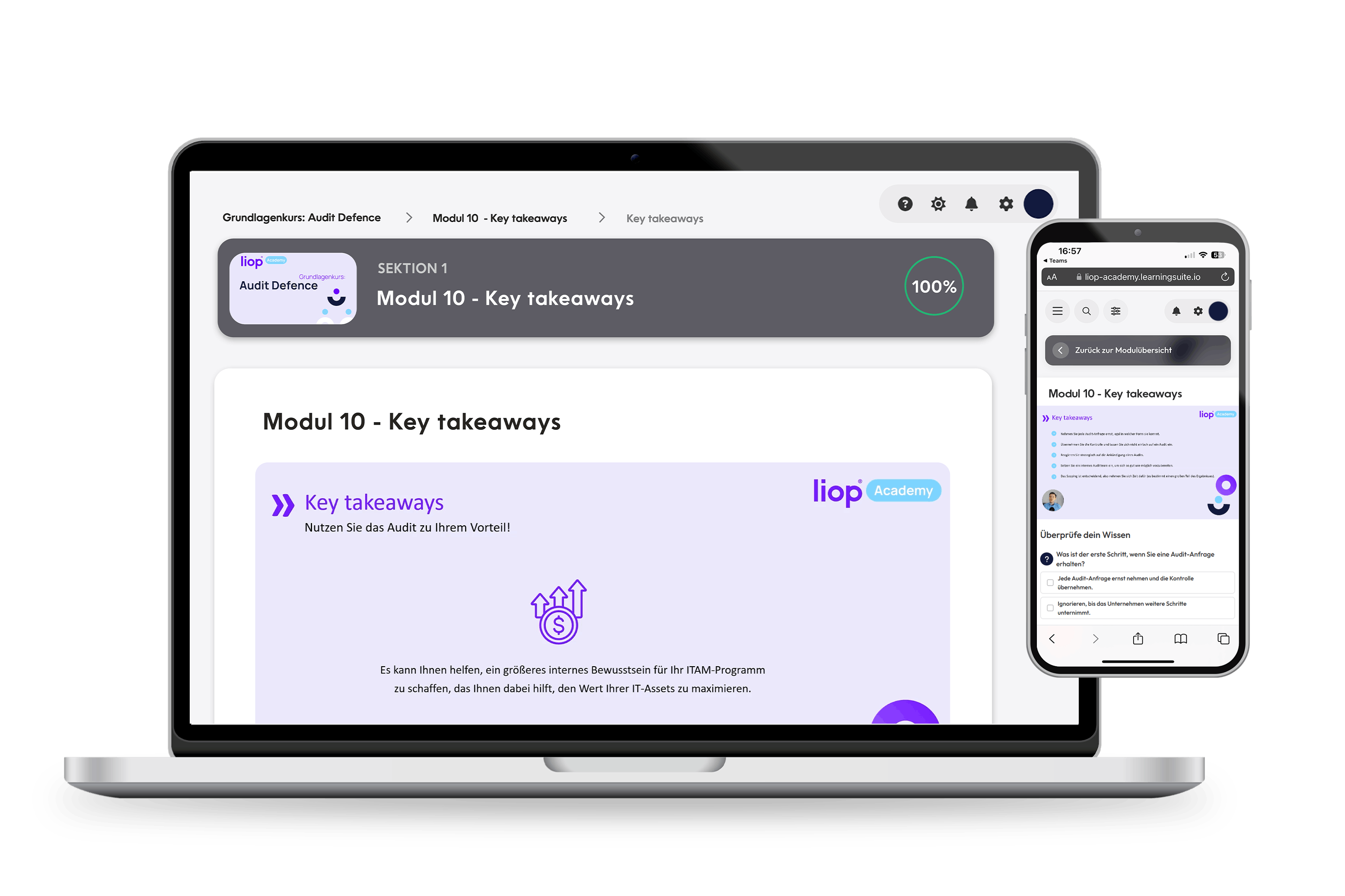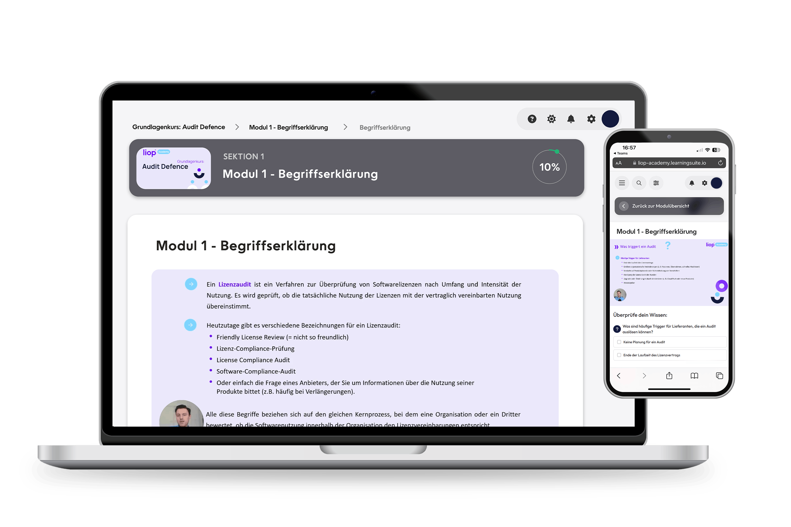 In 10 thematisch aufeinander aufbauenden Modulen erhältst du umfassende Grundlagen, um Lizenz-Audits souverän in deinem Unternehmen zu meistern.