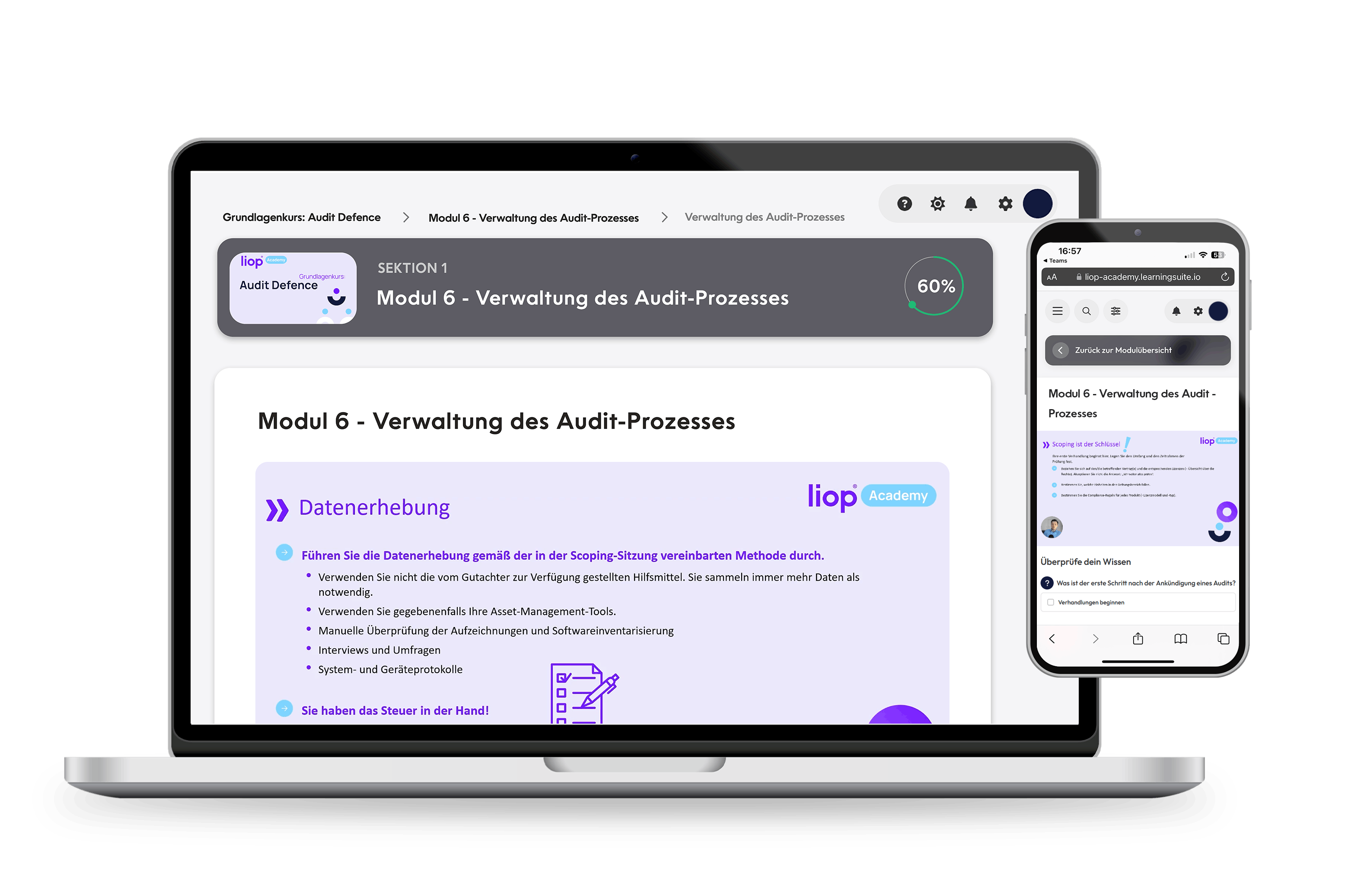 • Den Audit-Prozess: Du verstehst den gesamten Ablauf eines Audits, von der ersten Anfrage bis zur finalen Prüfung, und lernst, wie du den Prozess erfolgreich steuerst.