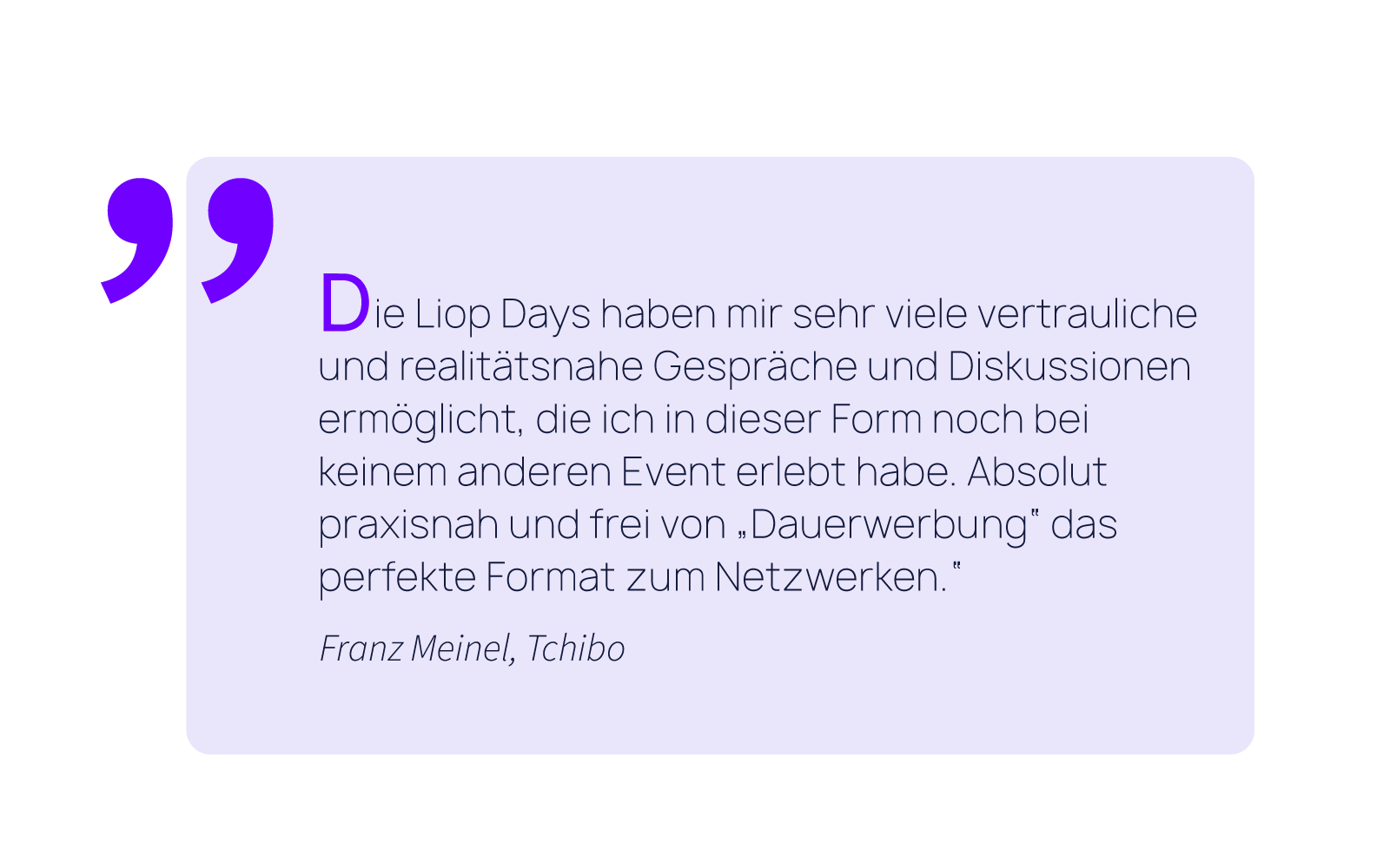 Mit dem liop® Club, der begleitenden Community-Plattform, bleibt der Austausch auch über die Veranstaltung hinaus bestehen. So können Teilnehmende miteinander verbunden bleiben, Fragen stellen und von der kollektiven Expertise profitieren.