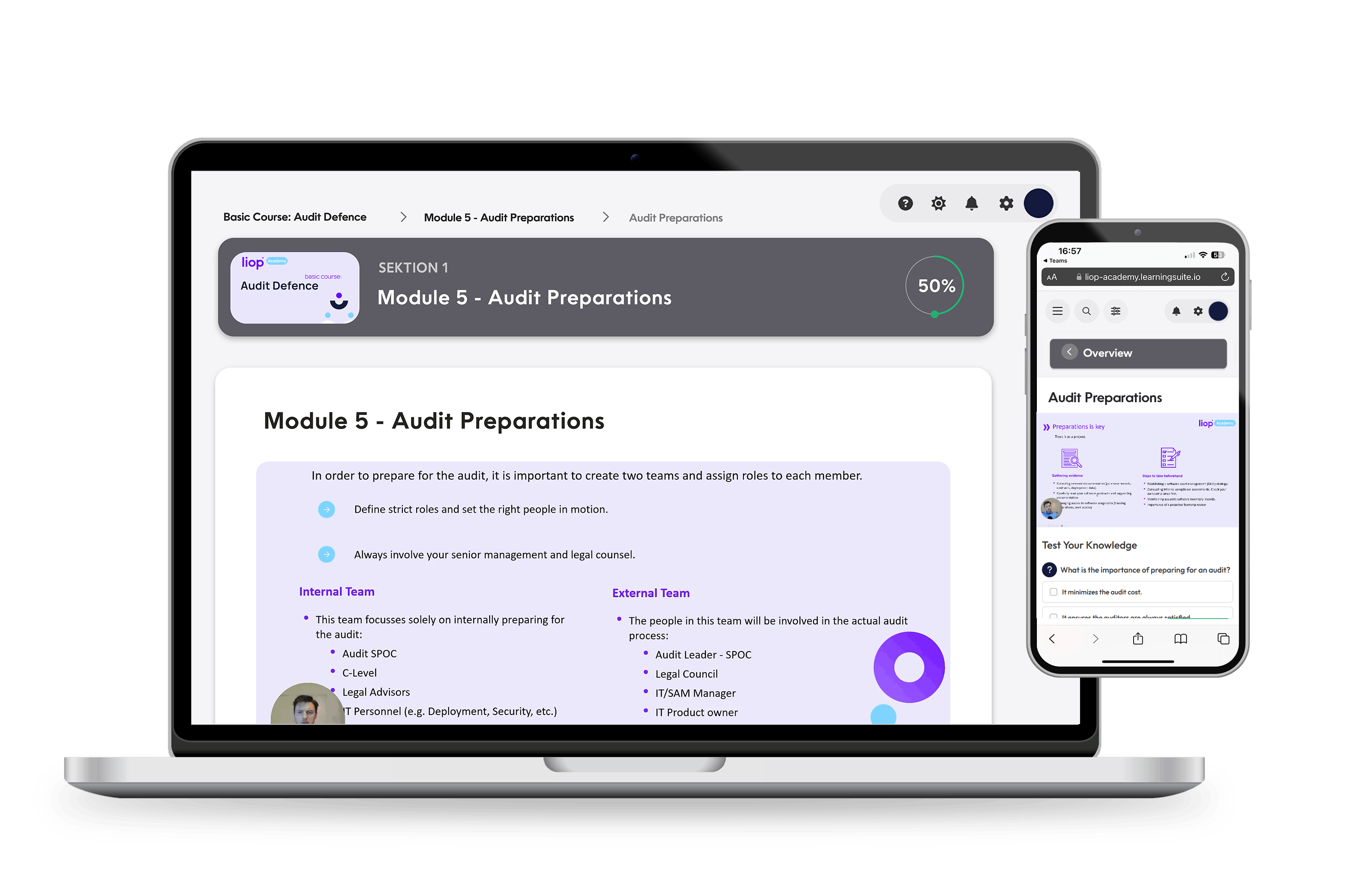 - Setting up two audit teams: You will learn how to coordinate two teams – an internal and an external team – for audit preparation to cover all aspects.