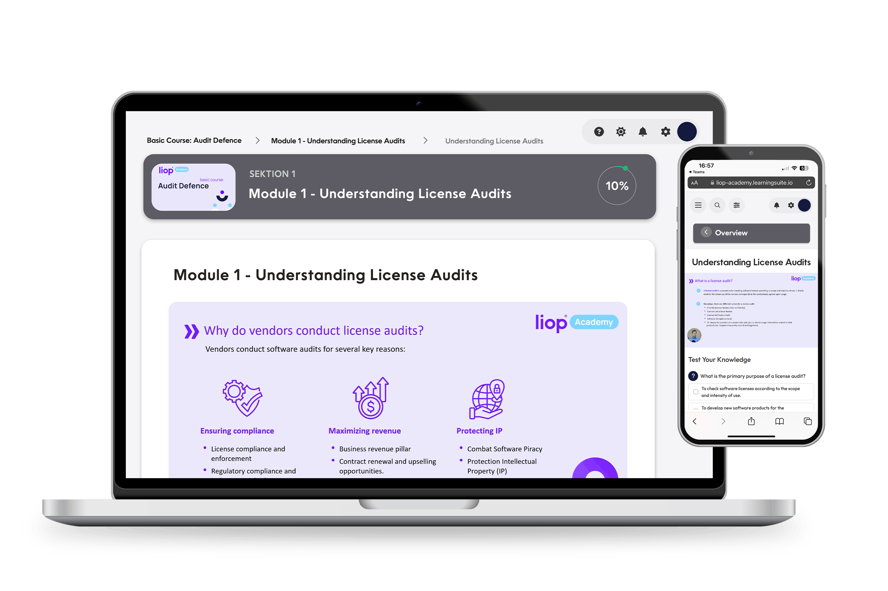 In 10 sequentially structured modules, you will gain comprehensive fundamentals to confidently manage license audits in your company.