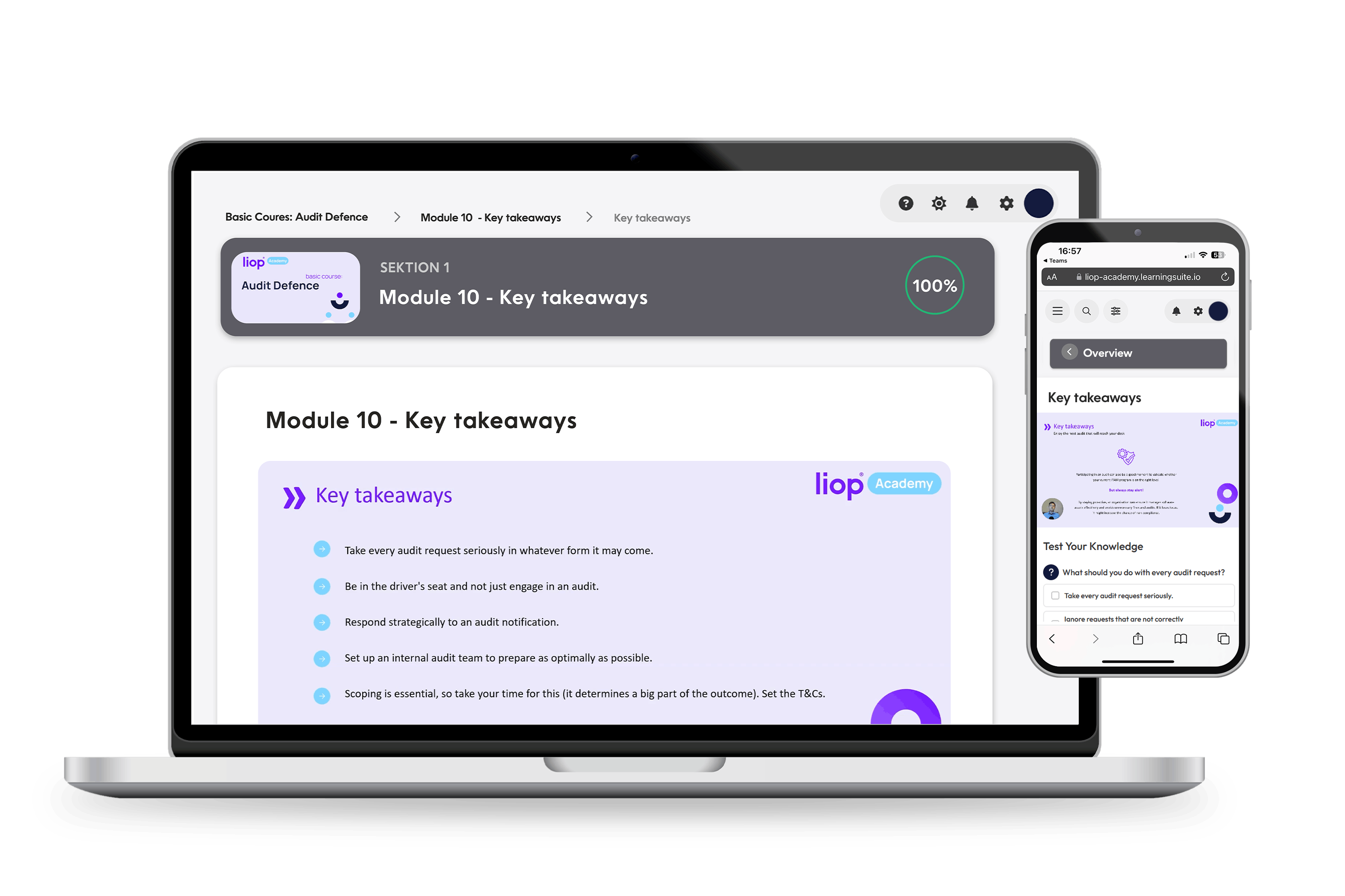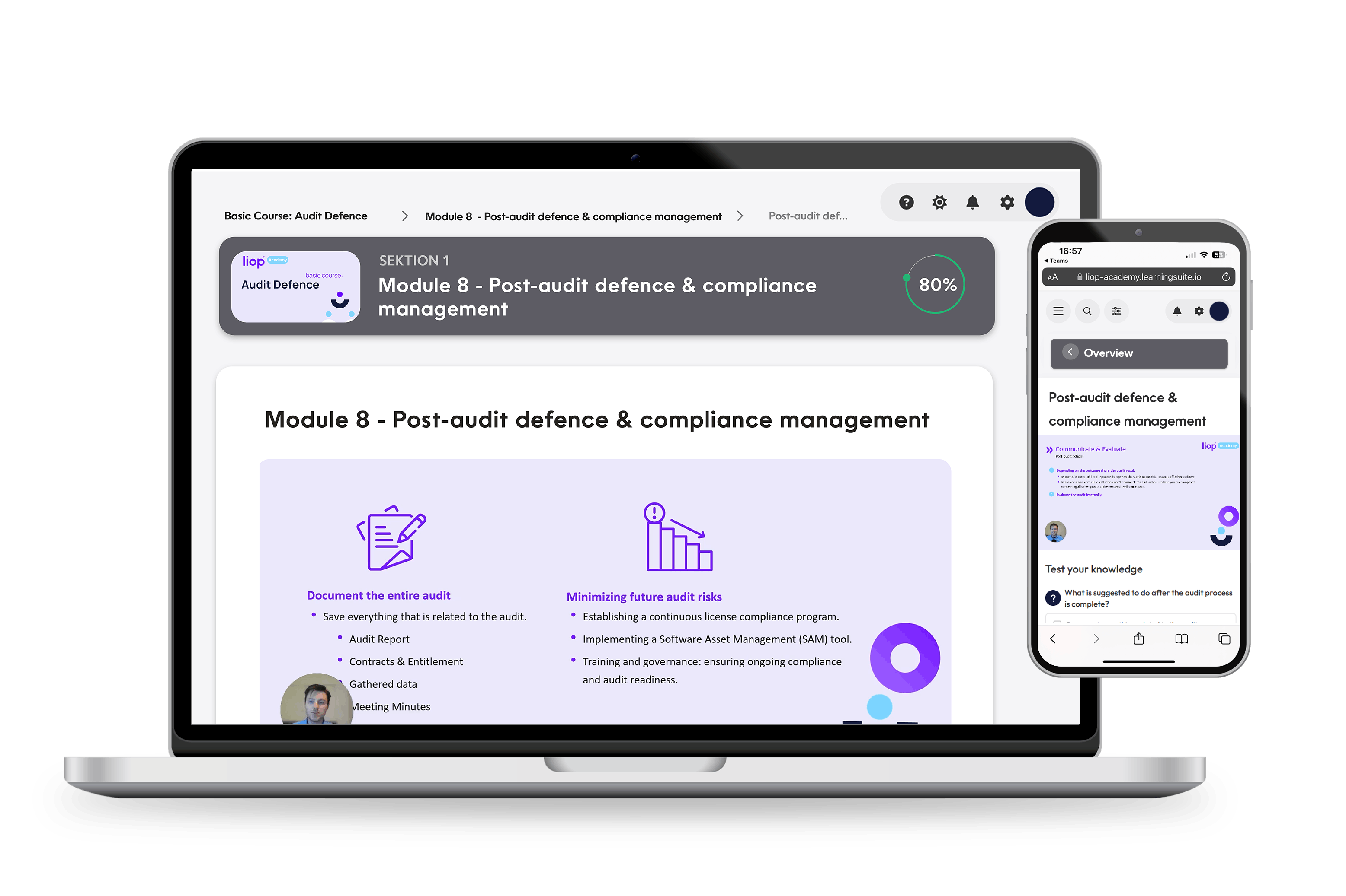 After Module 8, you will be able to document the audit process, minimize future risks, and communicate the audit results effectively. You will be able to assess improvements internally, implement changes, and transparently inform external stakeholders if needed.