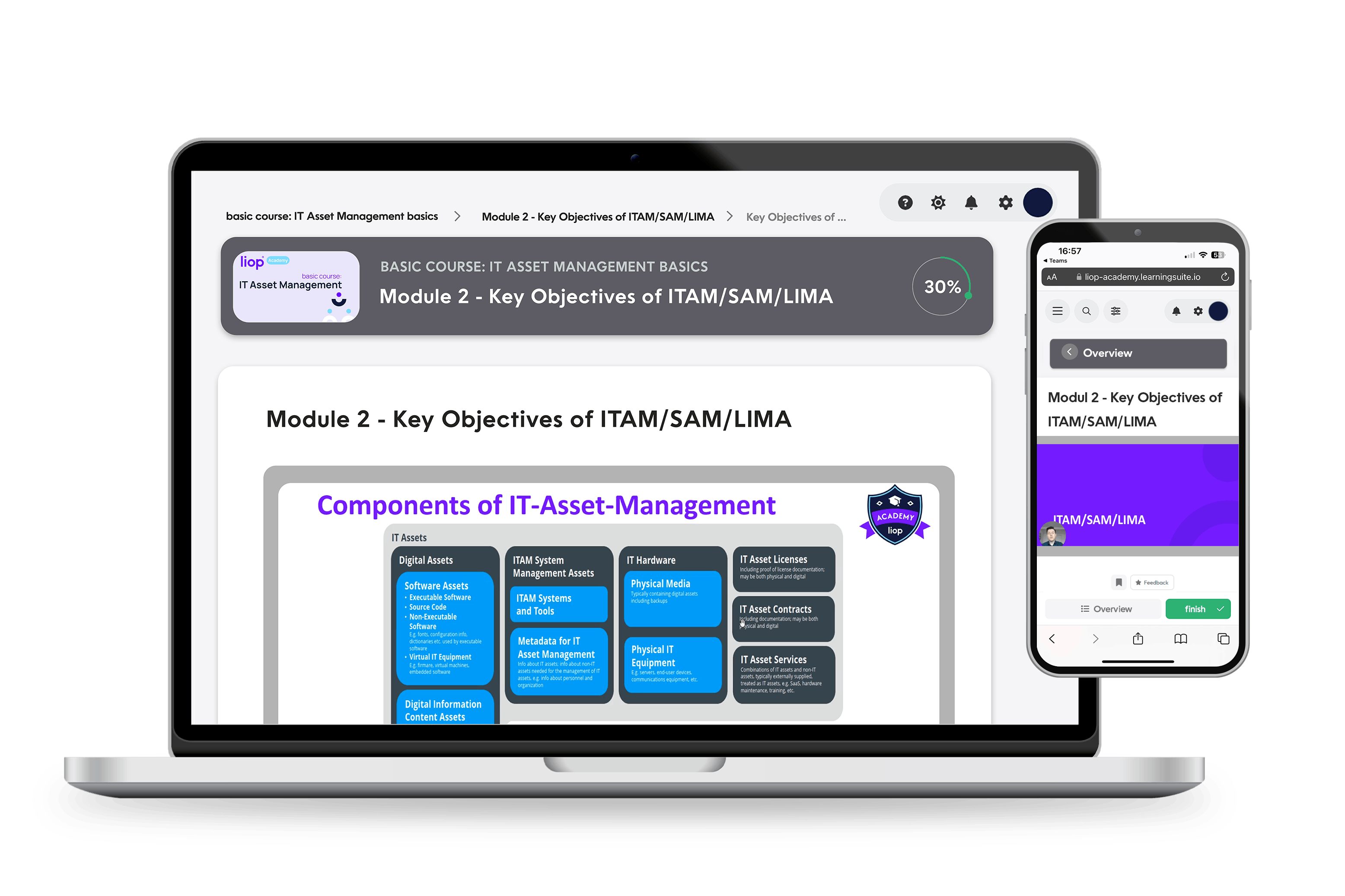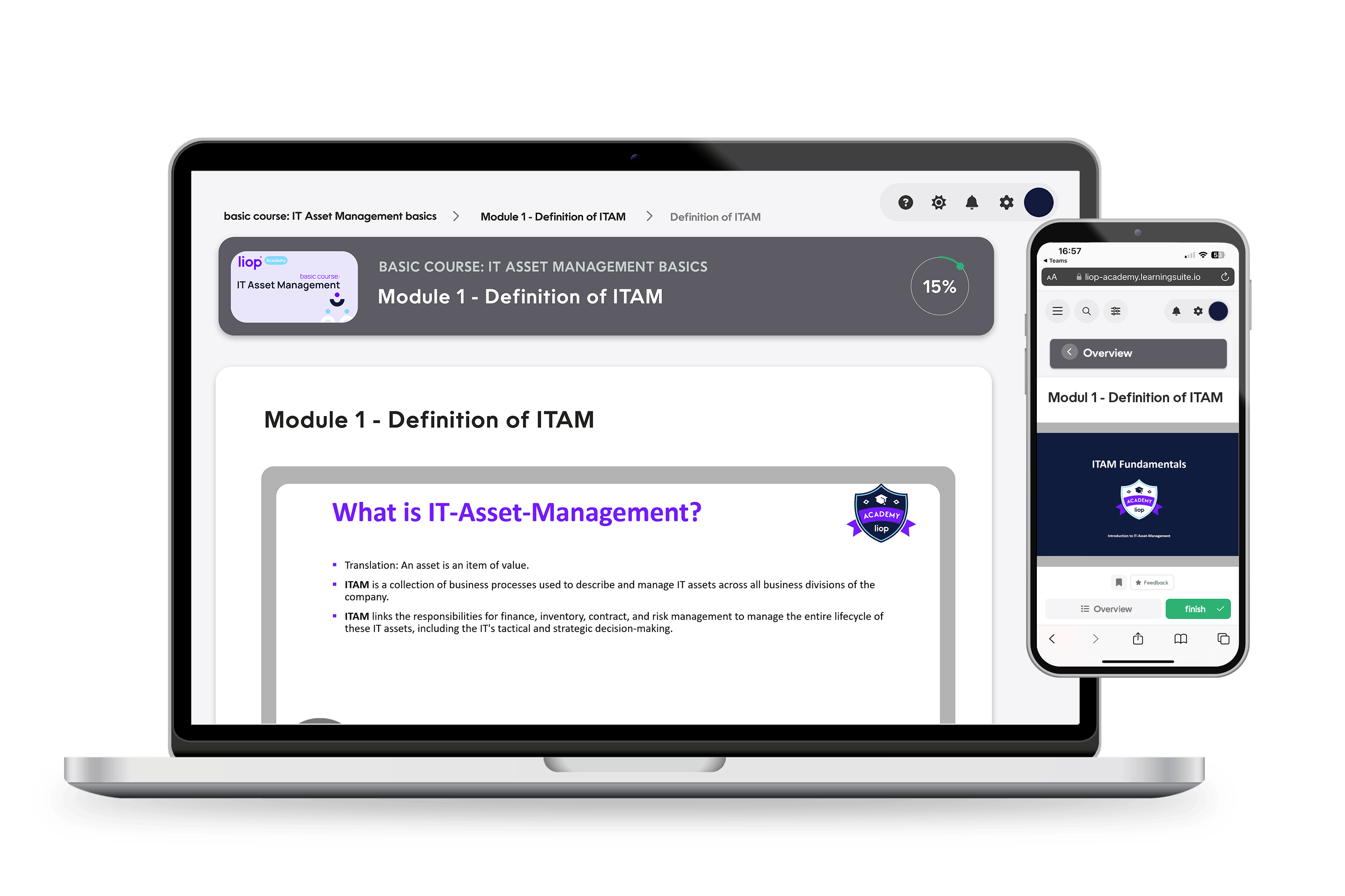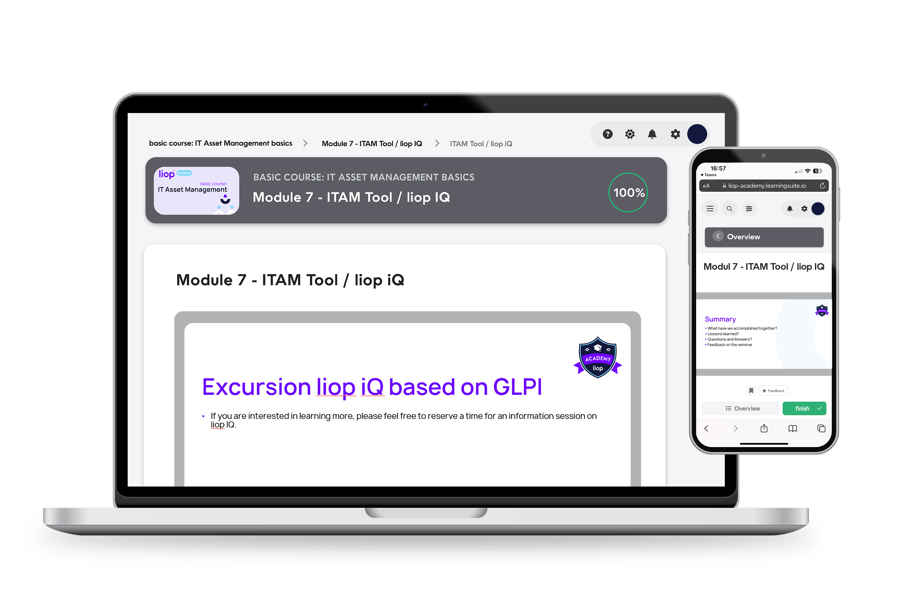 After Module 7, you will understand ITAM tools such as liop iQ, know their features and benefits, and understand how to integrate them into your existing IT processes to optimize IT asset management in your organization.