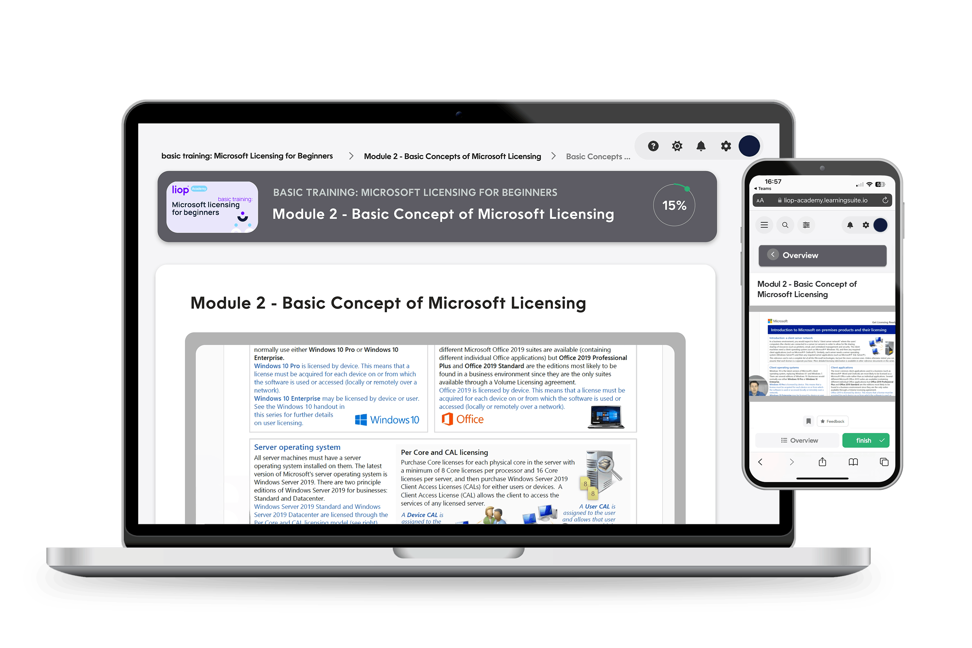 After Module 4, you will understand the licensing requirements for major Microsoft products, including Office desktop applications, Windows operating systems, Windows Server, SQL Server, developer products, SCCM, and CAL suites. You will know how to effectively license these products and optimally use the differences between purchase and rental models for your company.
