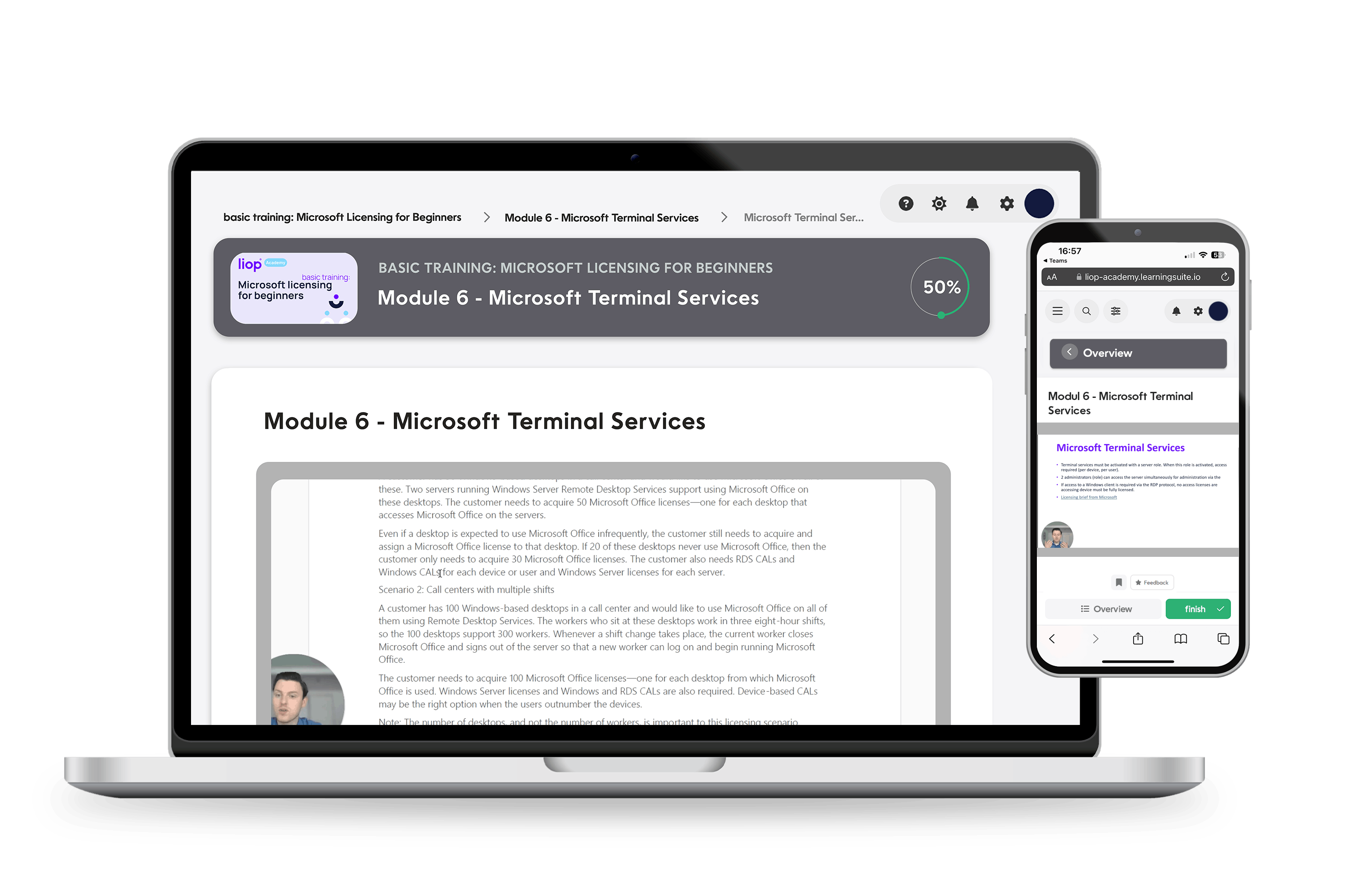 After Module 6, you will have a comprehensive understanding of Microsoft Terminal Services (Remote Desktop Services) licensing. You will know how to select the appropriate licenses for terminal services, correctly implement them in virtualized environments, and avoid common mistakes. Additionally, you will be able to apply practical best practices for technical implementation and configuration.